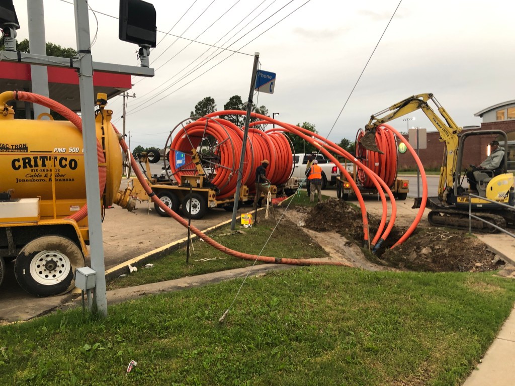 Crittco Cable & Fiber is just south of the heart of Jonesboro with approximately 8,000 square feet of shop space plus storage units and a covered wash bay. It is equipped with a fleet of boring rigs, bucket trucks, backhoes, mini excavators, plows, vacuum excavators, bulldozers, service trucks, low boys, tuggers, reel trailers, dump trucks and a duct washing machine. It also has all necessary safety equipment, such as trench boxes, rock tubs, blowers, confined space equipment and more.